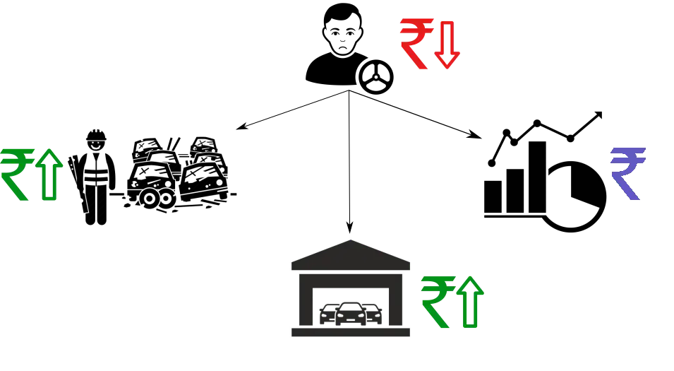 Also, other government projects will be affected since government funds will be diverted towards this policy. And similarly, other sectors of the Indian economy will be affected as car owners now have to spend on the purchase of replacement cars and thus will have to defer other purchases for a later time. But as we will see later, this short term reallocation of spendings will have huge positive long term economic repercussions in India!