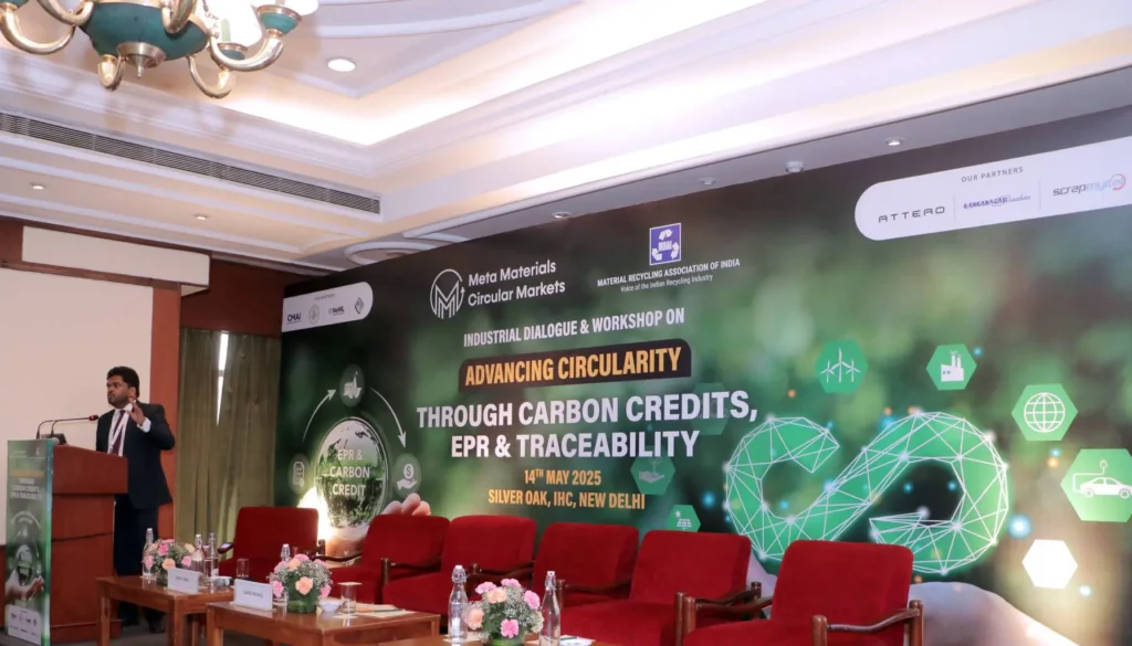 On May 14th, 2025, industry leaders, government officials, and recycling experts gathered at the Silver Oak Hall, India Habitat Centre, Delhi for a pivotal event focused on advancing circular economy models through innovative mechanisms. The event, organized by Material Recycling Association of India (MRAI) in collaboration with Meta Materials Circular Markets (MMCM), brought together stakeholders from across the value chain to address the critical components driving India’s circular economy: carbon credits, Extended Producer Responsibility (EPR), and traceability systems.